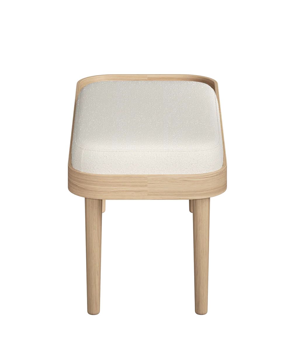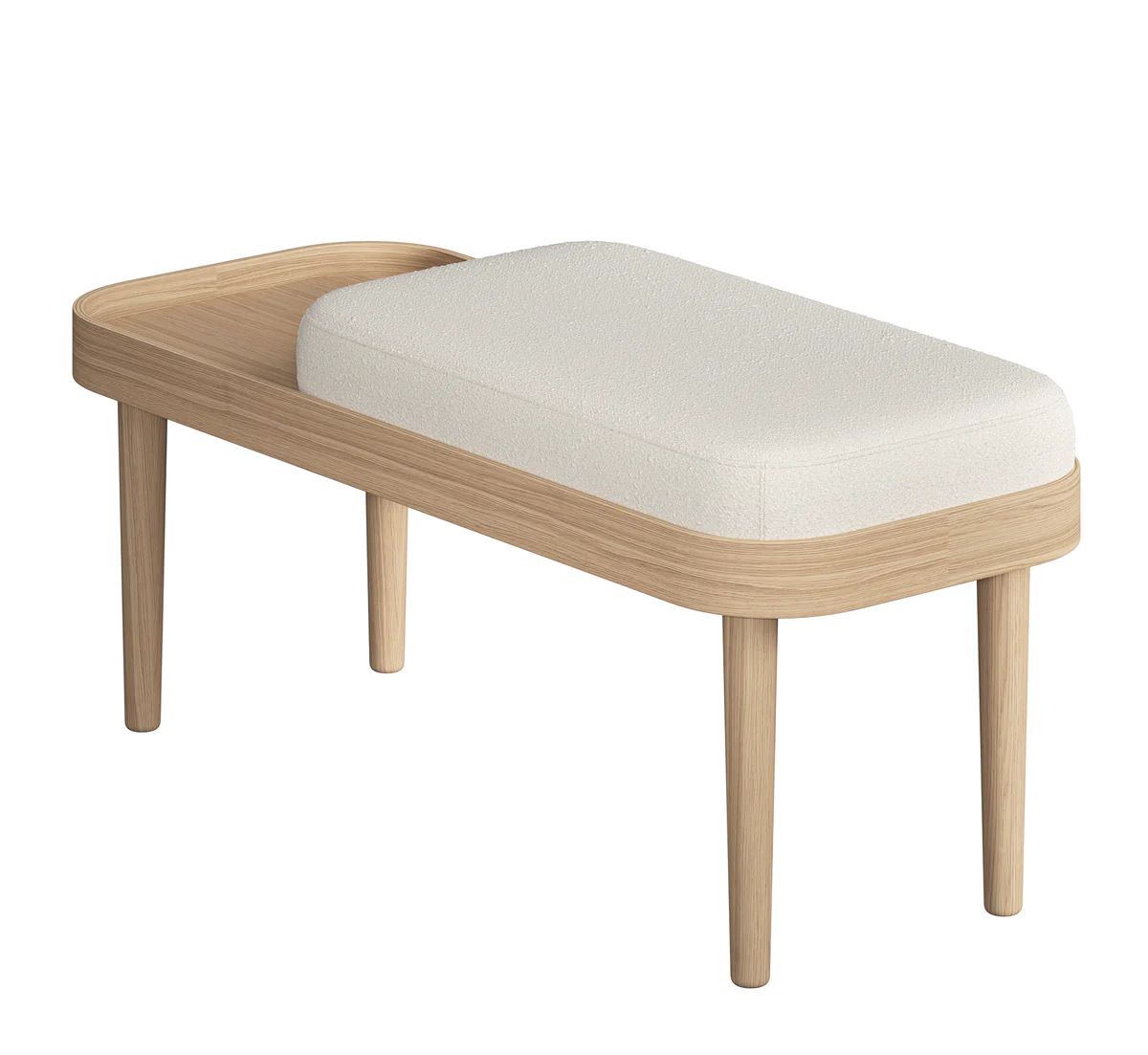 Erhältlich in verschiedenen Farben für die Polsterung und mit einem Gestell in Eiche natur oder dunkel gebeizt, passt die Bank perfekt zu unterschiedlichen Einrichtungsstilen.