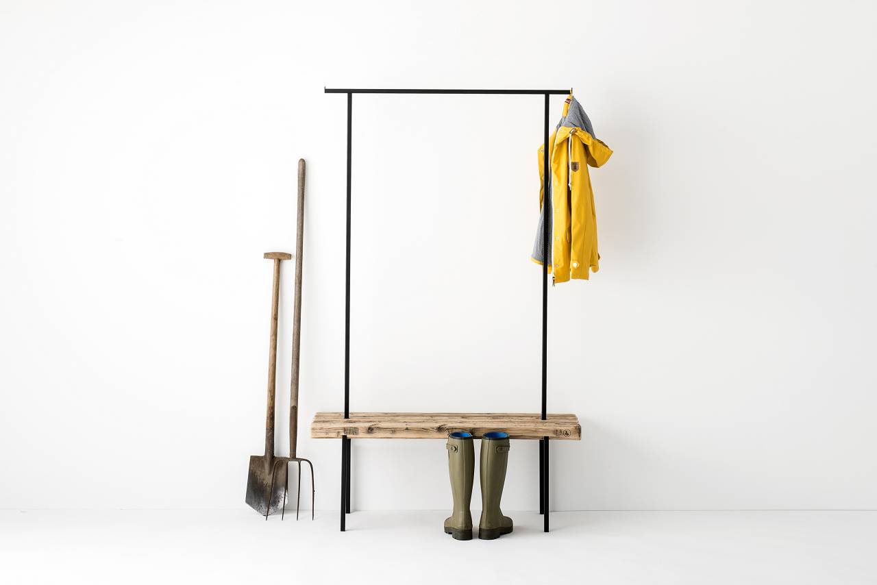 Die Garderobe Altholz 01 von weld & co ist eine Bank kombiniert mit einer Kleiderstange, die nicht nur gut aussieht, sondern auch mit Funktionalität punkten kann. Die Bank der Design Garderobe wurde aus rustikalem Altholz gefertigt und passt perfekt zu den schwarzen pulverbeschichtetem Metallstäben die, die Kleiderstange formen. Die holz Garderobe passt perfekt in den Eingangsbereich, sieht aber auch gut im Ankleide- oder Schlafzimmer aus. Die Sitzfläche eignet sich perfekt zum Abstellen von Taschen und zum Hinsetzen, um Schuhe zuzubinden. Jacken, Mäntel und Kleidung finden ihren Hängeplatz an der stabilen Stange. Die Garderobe Altholz 01 ist in drei Größen (S 90 × 40 × 190 cm, M 117 × 40 × 190 cm, L 150 × 40 × 190) erhältlich und passt so in jeden Flur oder in jedes Schlafzimmer.