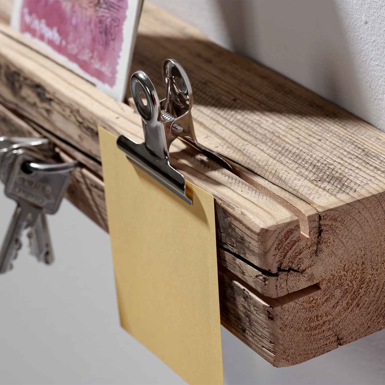 Für Ihren Eingangsbereich ist das Schlüsselbrett Altholz 01 von weld & co perfekt geeignet, da Sie beim Nachhause kommen und Verlassen des Hauses einen praktischen Ablageort für Ihre Schlüssel haben. Die hochwertig verarbeitete Schlüsselablage passt perfekt in jeden Haushalt und wird aufgrund des verwendeten Holzes zu einem echten Blickfang. In den vorderen Schlitz können Schlüssel und Schlüsselringe gesteckt werden. Auf der Oberseite der Schlüsselablage aus Holz ist ein weiterer Schlitz in den beispielsweise Briefe hineingestellt werden können oder mithilfe eines Briefklemmers Notizen angeheftet werden können. Das Schlüsselbrett mit Ablage bietet zudem Platz für einen Geldbeutel oder eine Sonnenbrille, die Sie beim nach Hause kommen eventuell in der Hand haben. Mit der praktischen Ablage werden Sie Ihre Schlüssel nicht mehr so schnell verlegen oder vergessen.