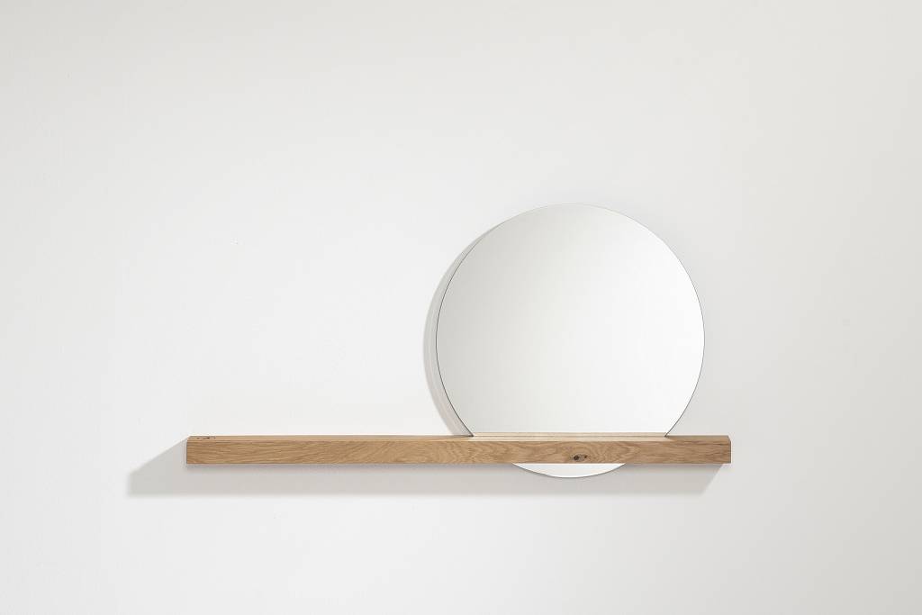 Produktinformationen "Wandspiegel mit Eichenholzleiste 100 × 7,5 × 4 cm, Spiegel Ø 50 cm rechts"