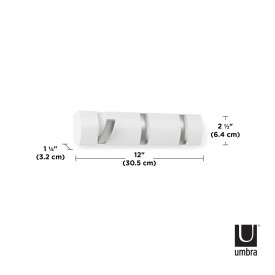 Die FLIP Garderobenleiste von Umbra ist eine moderne und funktionale Garderobenleiste welche mit 3, 5 oder 8 Haken und in unterschiedlichen Farben erhältlich ist. Die Wandgarderobe verfügt über klappbare Haken, die sich bei Nichtgebrauch einfach zurückklappen lassen. Trotz seines schlichten und raumsparenden Designs bietet Flip überraschend viel Platz und macht die Garderobe zu einem perfekten Halter für Jacken, Schals, Taschen und mehr. Die Flurgarderobe mit beweglichen Haken fügt sich auch in einen schmalen Flur perfekt ein und wirkt nicht zu aufdringlich. Stylisch - platzsparend und praktisch dafür steht das Design Wandgarderobe.