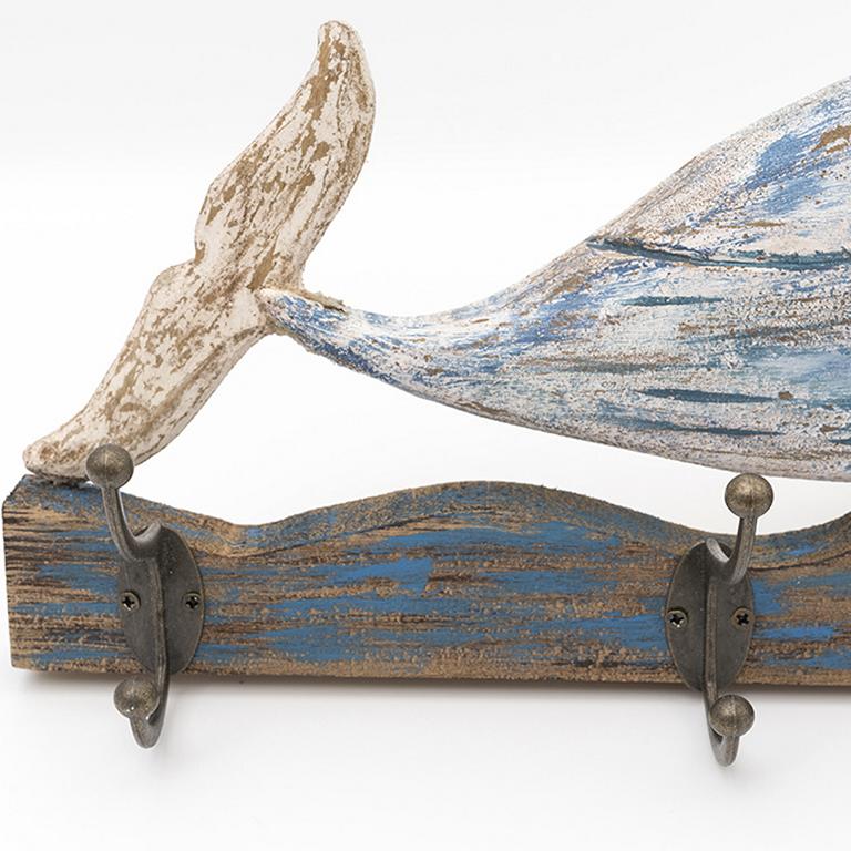 Sie sind auf der Suche nach einer außergewöhnlichen Garderobe, dann ist die Kindergarderobe Pottwal mit 4 Haken die richtige Wahl für Sie. Aufbewahrungsmöglichkeiten, welche gleichzeitig noch ein echter Blickfang sind, wünscht sich doch jeder. Die Wandgarderobe aus Holz zeigt einen Buckelwal welcher auf einer Welle schwimmt und kann auch perfekt als Kindergarderobe im Eingangsbereich oder Kinderzimmer genutzt werden.