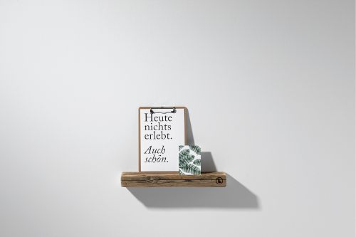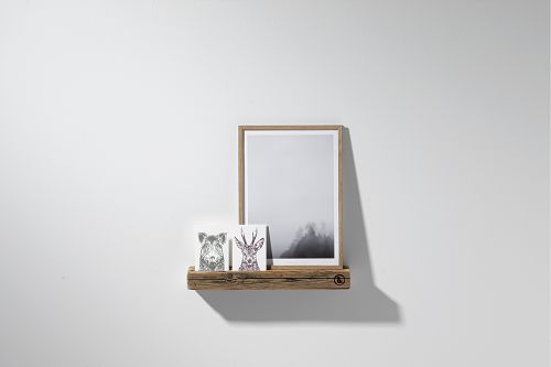 Die aus Eiche gefertigte Bilderleiste wurde hochwertig verarbeitet und ist ein schönes und praktisches Wohnaccessoire zugleich. Dekorativ, da Sie Bilder, Teelichtgläser oder andere Erinnerungen darauf platzieren können aber auch praktisch, da Sie dort wichtige Briefe in den eingefrästen Schlitz hineinstellen können. Mithilfe eines Briedklemmers können Sie auch wichtige Notizen an die Vorderseite der Bilderleiste aus Holz klemmen, um Sie keinesfalls zu vergessen. Sie können die Ablage aus Eiche mithilfe von zwei Schrauben an der Wand, in jedem Wohnbereich anbringen. Das verwendete Altholz wirkt keinesfalls alt, sondern rustikal, dennoch äußerst modern. Sie kann perfekt in einen modernen Einrichtungsstil integriert werden. Sie ist in drei verschiedenen Größen, in den Längen 50 cm, 100 cm und 150 cm erhältlich.