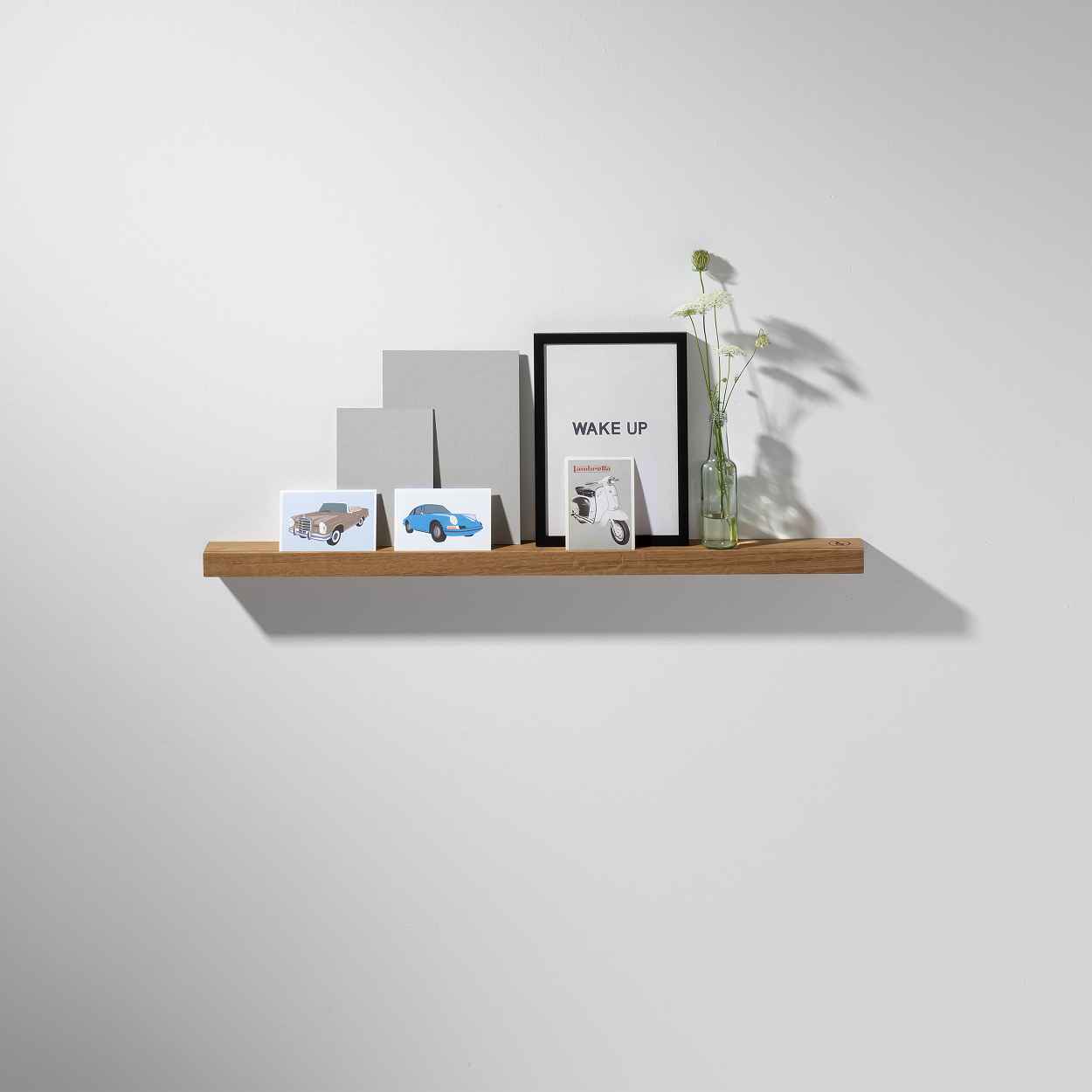 Dekorativ, da Sie Bilder, Teelichtgläser oder andere Erinnerungen darauf platzieren können aber auch praktisch, da Sie dort wichtige Briefe in den eingefrästen Schlitz hineinstellen können. Mithilfe eines Briedklemmers können Sie auch wichtige Notizen an die Vorderseite der Bilderleiste aus Holz klemmen, um Sie keinesfalls zu vergessen. Sie können die Ablage aus Eiche mithilfe von zwei Schrauben an der Wand, in jedem Wohnbereich anbringen. Sie ist in drei verschiedenen Größen erhältlich.