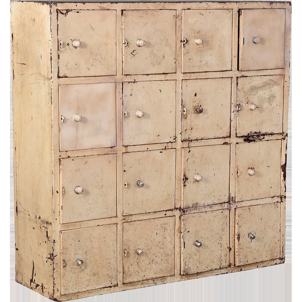Produktinformationen "Altes Schließfach mit 16 Türen, Unikat"