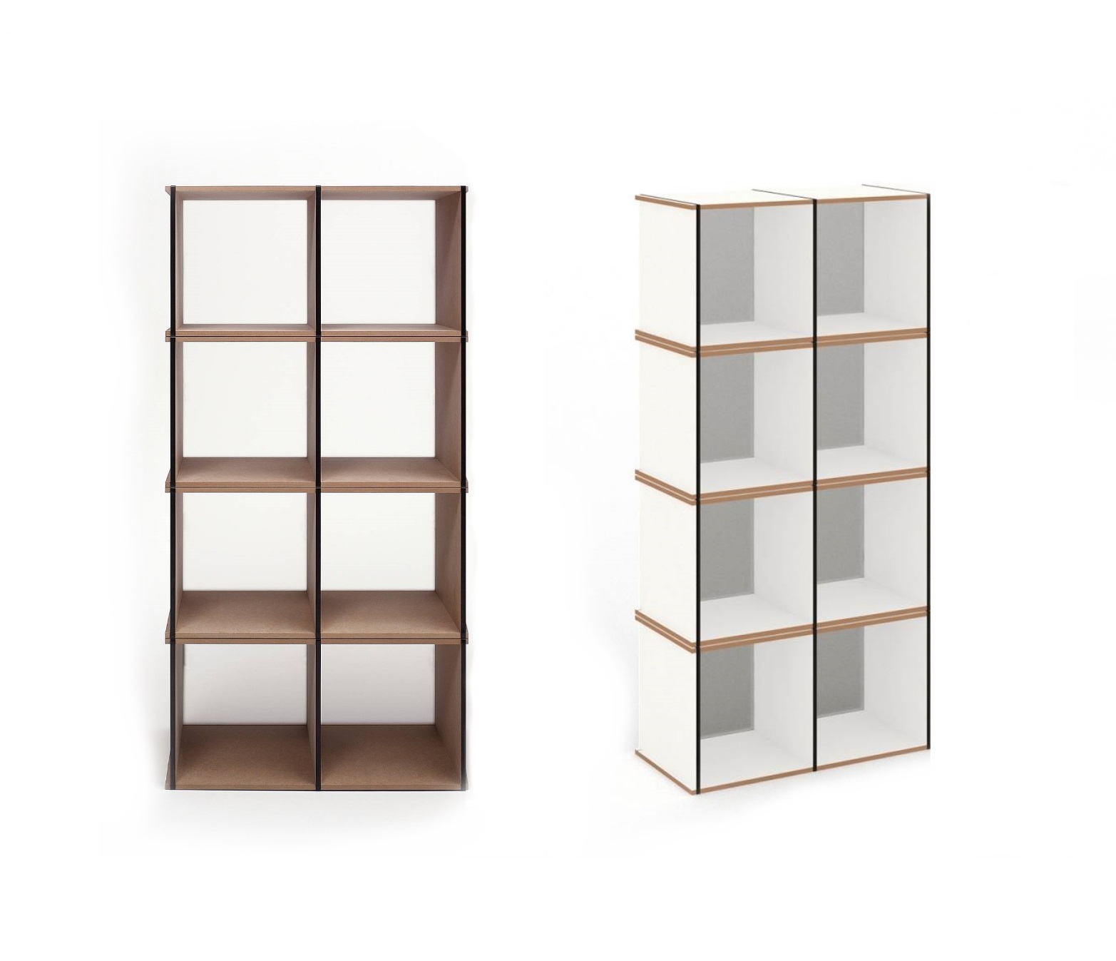 Das Aktenpack Regal 01 ist perfekt als schlankes Regal für Ihr Wohnzimmer oder den Eingangsbereich geeignet. Es besteht aus zwei Aktenpack Elementen.