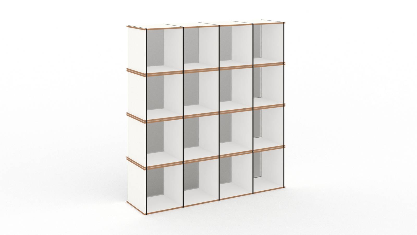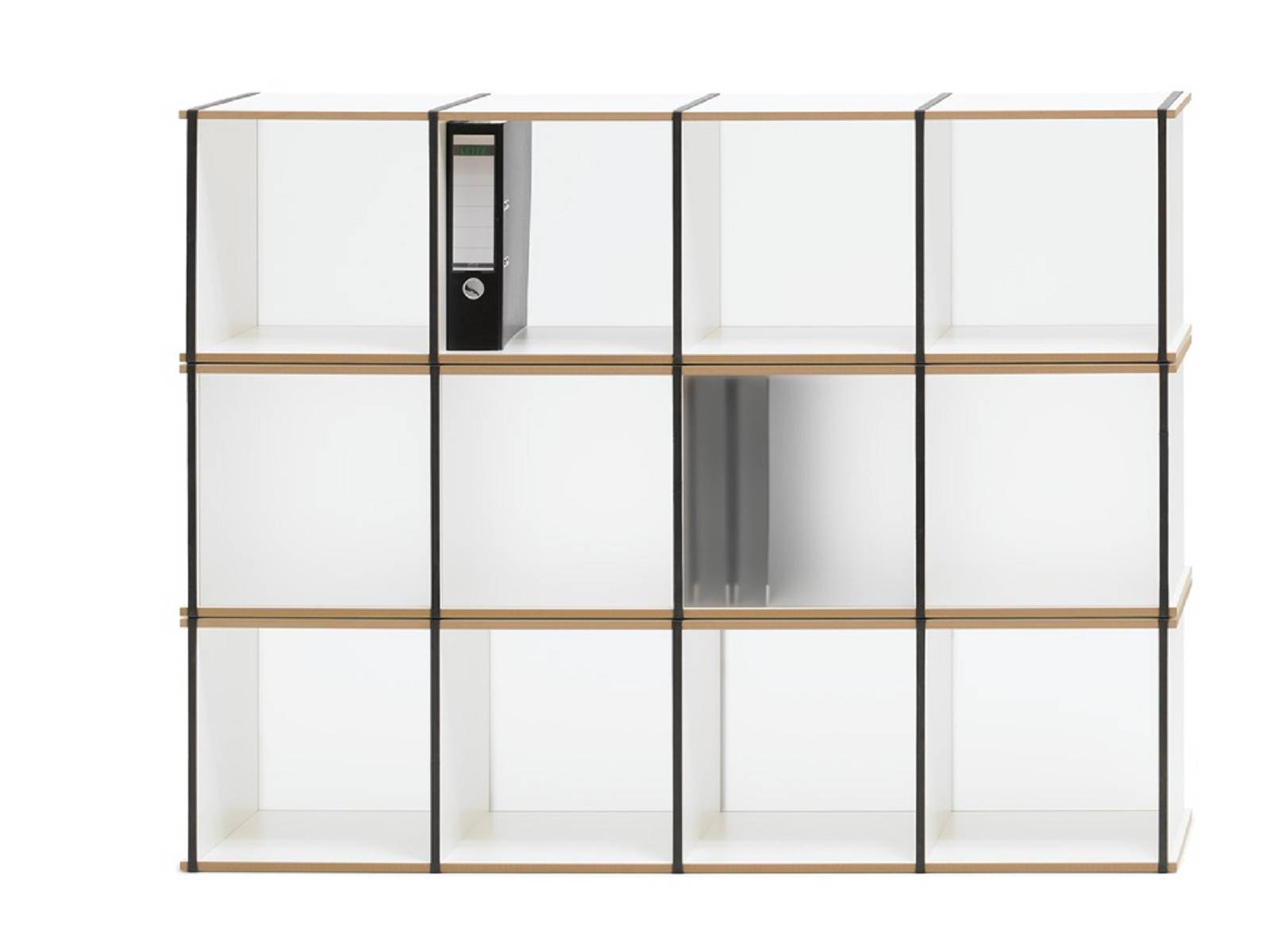 Das Aktenpack Regal 03 ist für große Büroräume oder als Wohnzimmerwand bestens geeignet. Es besteht aus vier Aktenpack Elementen.