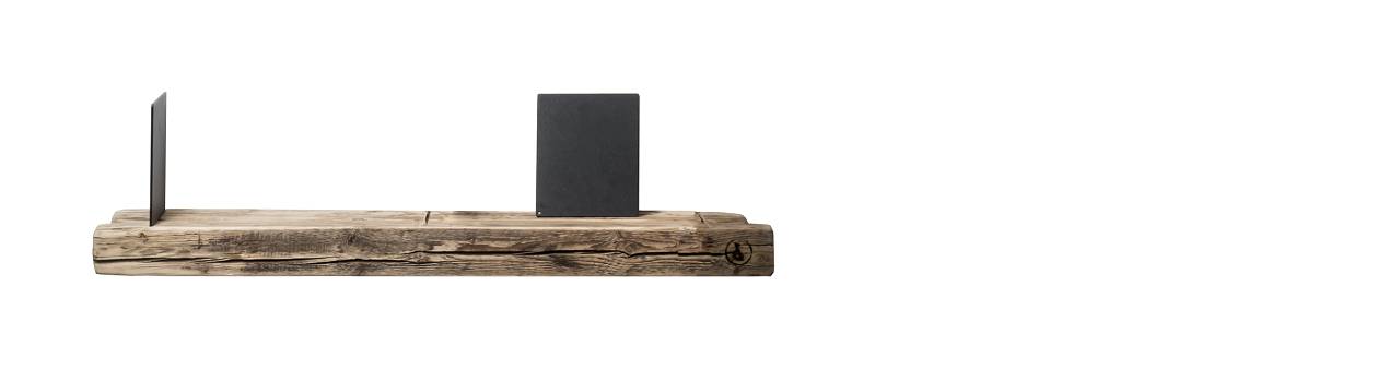 Mit dem Wandregal Altholz 01 von weld & co wurde eine stilvolle Ablagefläche für Ihren Wohnbereich geschaffen. Im Holzwandregal sind waagrecht und senkrecht gefräste Nuten vorhanden, die mit den mitgelieferten Buchstützen aus pulverbeschichteten Metall einfach in die senkrechten Nuten gesteckt werden können. Bilder oder Karten lassen sich auf diesem Wandregal dank der waagerechten Nut auch perfekt in Szene setzen und finden so sicheren Halt auf dem Wandregal aus Altholz.