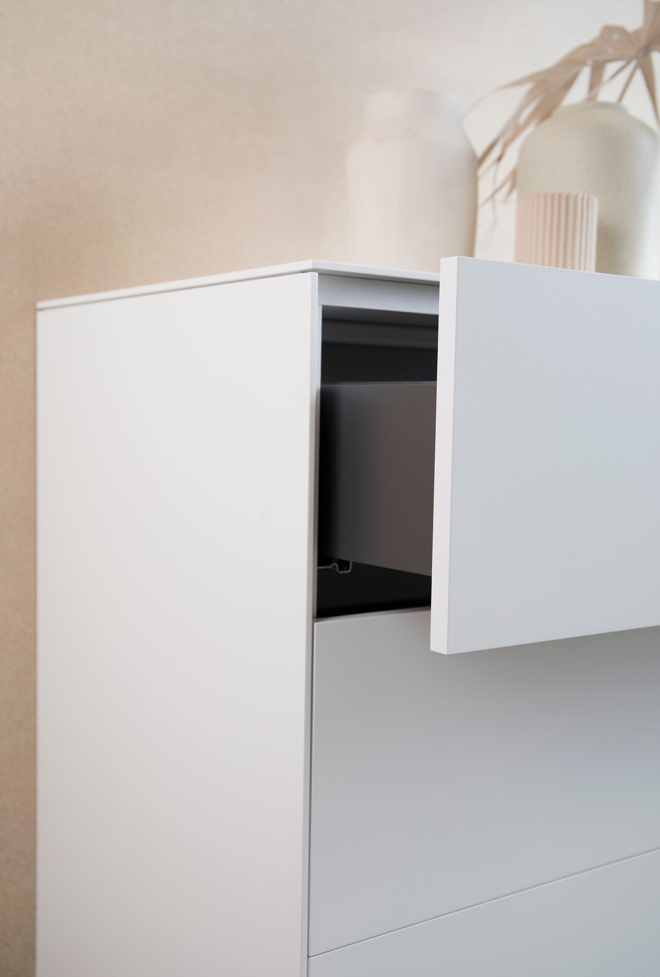 Der form1 f10 connect Container mit drei Schubkästen auf Gleitern strahlt durch sein makelloses Design und ist durch seinen großen Stauraum ein echtes Raumwunder. Das moderne und schlichte Design ist perfekt für jeden Wohnraum geeignet. Der Container eignet sich hervorragend als Sideboard und ist natürlich auch gut mit anderen Möbelstücken aus der connect-Serie zu kombinieren. Außerdem glänzt er durch seine Flexibilität, die Seiten, die Abdeckplatte und Fronten sind einzeln austauschbar.