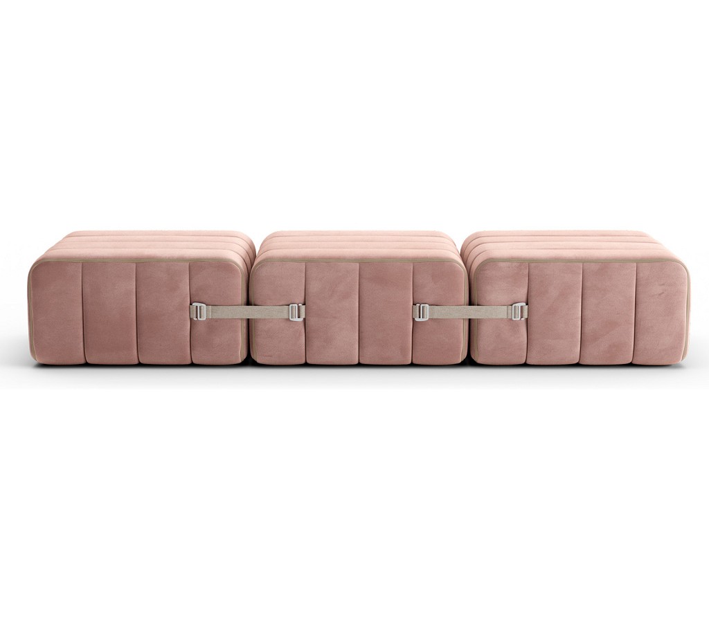 Das Sofa besteht aus drei Sofamodulen, welche mit Gurten verbunden sind. Dadurch entsteht eine kleine Couch zum Wohlfühlen.