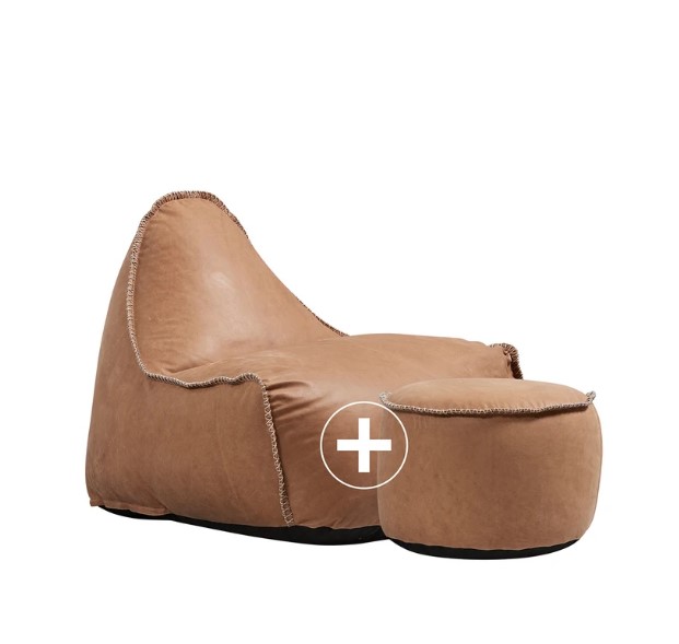 Produktinformationen "RETROit Dunes Sitzsack Sparset – Sessel mit Hocker aus Naturleder Camel"