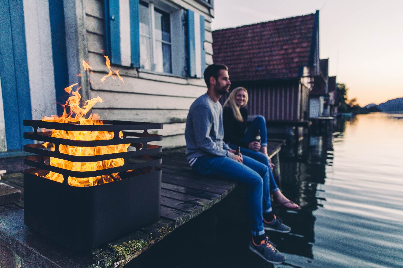 Eine sichere und kontrollierte Alternative zu einem offenen Feuer ist der Cube Feuerkorb schwarz von höfats. Er bietet die Möglichkeit für ein Feuer auf dem Balkon, der Terrasse oder im Garten. Durch Umdrehen des Feuerkorb CUBE wird das Feuer sicher und sauber beendet. Außerdem lässt sich der Feuerkorb Stahl so mit dem separat erhältlichen "Auflagebrett für CUBE" in einen gemütlichen Outdoor Hocker verwandeln. Durch das separat erhältliche Zubehör "Grillrost für CUBE" wird aus dem CUBE ganz schnell ein Feuerkorb mit Grill. Der höfats Feuerkorb cube inkl. Zubehör kann bei IchLiebeDesign.de erworben werden.