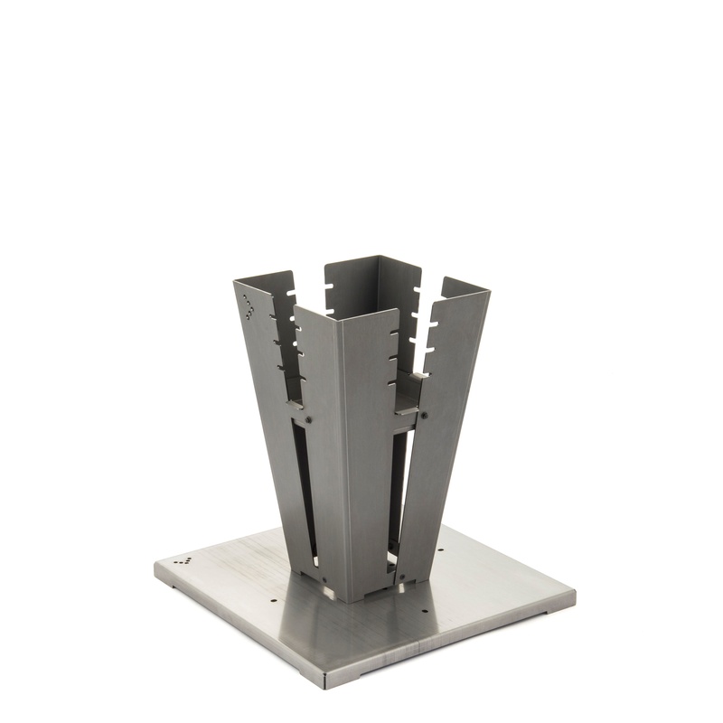 Ebenfalls erhältlich ist ein Sockel, welcher die Feuerstelle besser zur Geltung kommen lässt und den Boden vor Glut und Funken schützt.