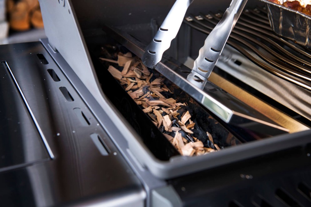 Die Edelstahl Räucherbox für Hitzeverteiler von Napoleon ist geeignet für die Grills Prestige PRO™ und Prestige®, Freestyle™ und Rogue®.