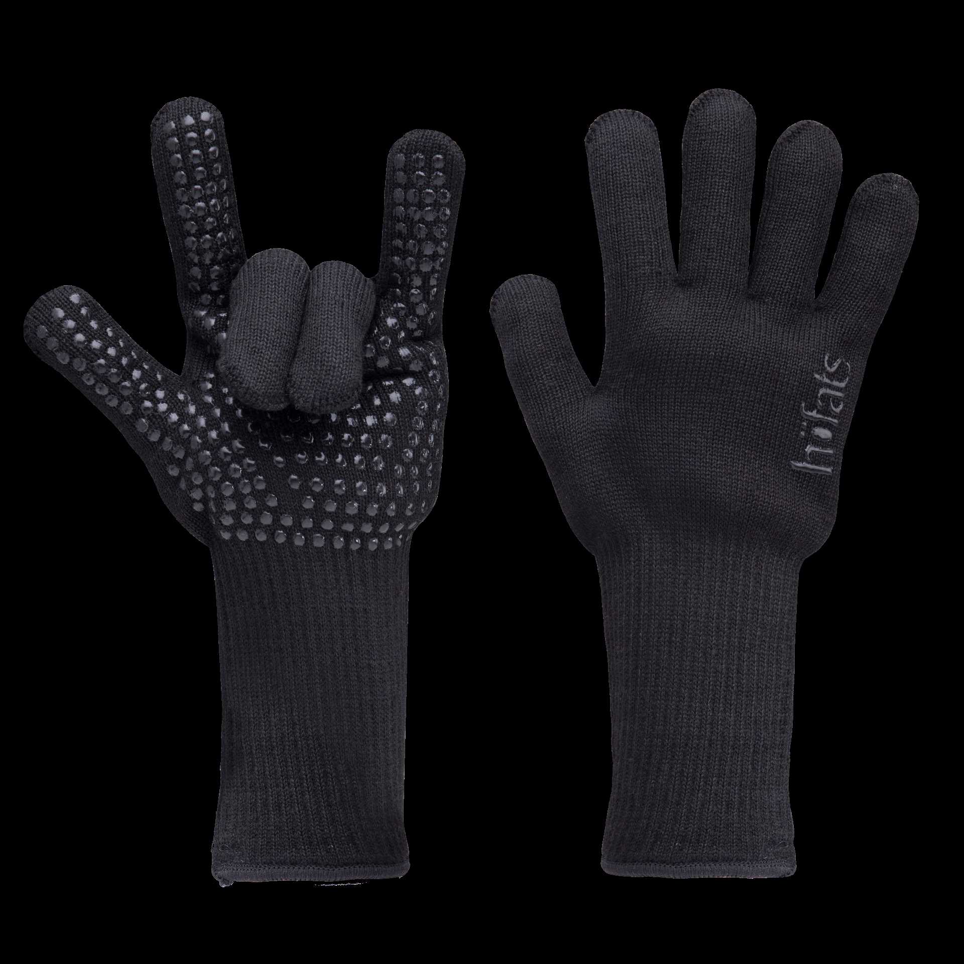 Die Feuerhandschuhe aus Aramid Schwarz von höfats sind ein absolutes Multitalent. Sie bieten Ihnen den idealen Schutz, wenn es darum geht, mit heißen Gegenständen umzugehen. Das temperaturbeständige Aramidfaser ist angenehm anschmiegsam wie eine zweite Haut und bietet dennoch einen hitzebeständigen Schutz bis zu 500° C. Der lange Unterarmschutz mit einer Länge von 13 cm hilft Ihnen, sich vor hohen Temperaturen zu schützen. Durch die hitzebeständigen Silikonnoppen an der Handfläche geben Ihnen einen sicheren Halt, selbst für sehr filigrane Gegenstände. Dank der Baumwollschlaufe lässt sich der Handschuh nach Benutzung auch einfach und sicher aufbewahren.