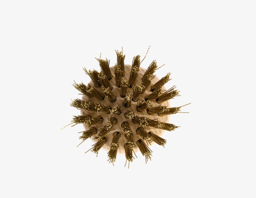 Die Bürste besteht aus einem Buchenholzgriff und Messingborsten – robust, langlebig und schonend für Grillroste.
