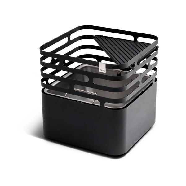Feuerkorb und Hocker CUBE in schwarz