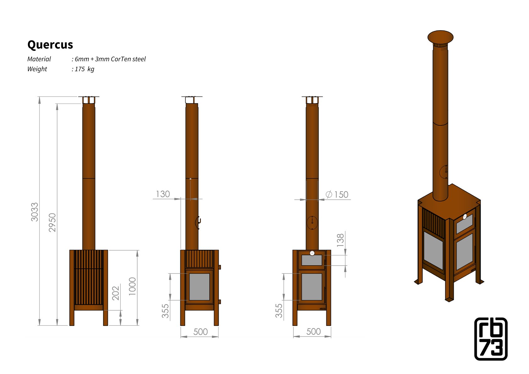 Der angeschweißte Stutzen verhindert, dass Regenwasser in den Ofen eindringt – so können Sie den Quercus das ganze Jahr über nutzen. Edelstahlbolzen an den Beinen sorgen dafür, dass der Ofen stabil und frei vom Boden steht. Der RB73 Quercus Outdoorofen Cortenstahl ist damit nicht nur praktisch, sondern auch ein echter Blickfang und schnell der Mittelpunkt geselliger Abende.