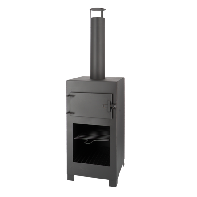 Der Ofen ist aus robustem Stahl gefertigt und somit langlebig sowie wetterbeständig.