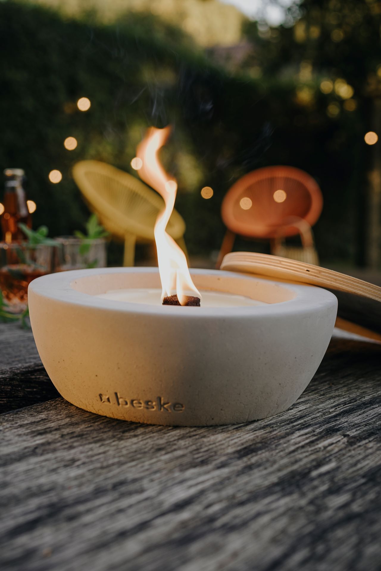 Das Betonfeuer Savo Ø 25cm - schmaler Rand von Beske-Manufaktur ist die perfekte Ergänzung für Ihren Außenbereich! Genießen Sie die Wärme einer Lagerfeueratmosphäre in Ihrem eigenen Garten mit diesem schönen Betonfeuer. Diese Feuerstelle verfügt über einen großen Docht und eine große Brennkammer für eine besonders hoch lodernde Flamme, die Ihre Gäste sicher beeindrucken wird. Der Docht ist so konzipiert, dass er nicht abbrennen kann, sodass Sie sicher sein können, dass Ihr Betonfeuer lange halten wird. Das Feuer ist sogar vollständig mit Wachs nachfüllbar - ganz im Sinne der Nachhaltigkeit. Außerdem ist ein Löschbrett enthalten, mit dem Sie die Flammen jederzeit ersticken können. Bringen Sie Ihre Freunde und Familie zusammen und machen Sie sich einen gemütlichen Abend mit dem Betonfeuer Savo.