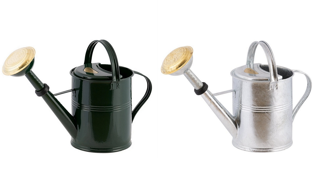 Die Gießkanne "Watering can 5 Liter" von PLINT, ist eine hochwertige Gießkanne mit einem aus Messing hergestelltem Brauseaufsatz, mit dem das Wasser beim Gießen gleichmäßiger verteilt werden kann. Sie besteht aus dickeren Eisenplatten als normale Gießkannen. Auch die Verschweißungen sind stark. Um sie haltbarer zu machen, werden die Gießkannen mit einer 460 Grad heißen Zinklegierung, die bis zu 50 Jahre hält, feuerverzinkt. Sie haftet am Eisen und verhinder so das Rosten der Gießkanne. Die Gießkannen die eine Färbung erhalten, werden anschließend pulverbeschichtet, während die anderen, welche keine Färbung, sondern den normalen Zink-Look beibehalten, in einem Oxidierungsprozess weiter verarbeitet werden. Die Gießkanne ist in zwei verschiedenen Farben erhältlich.