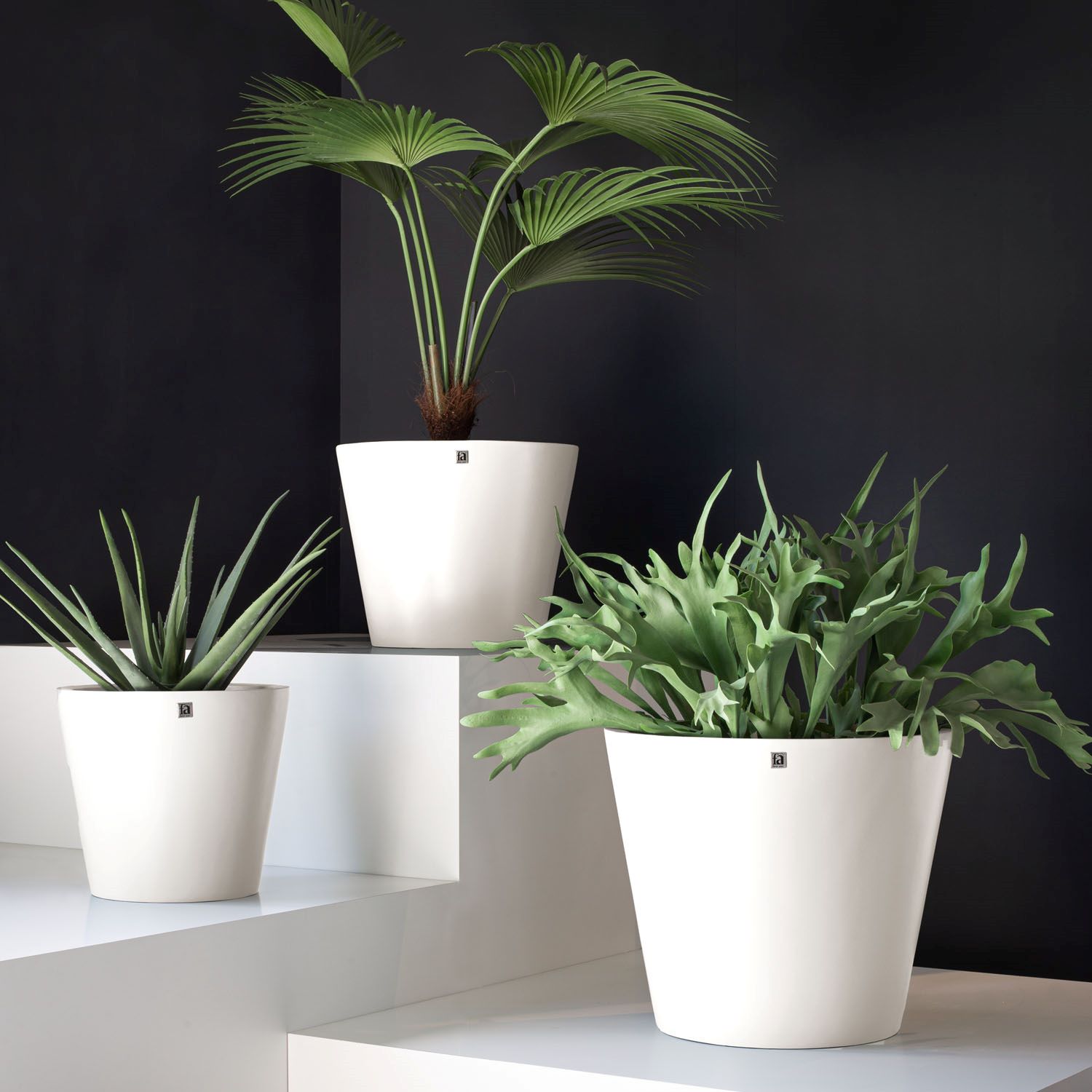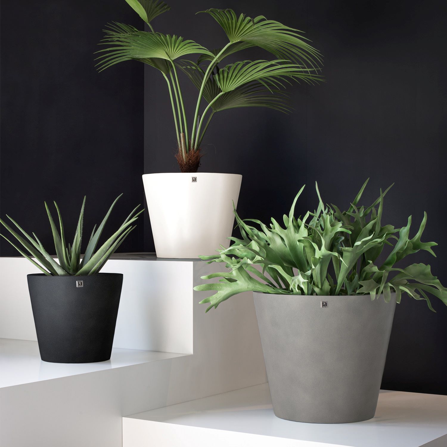 Erhältlich in verschiedenen Größen und Farben, ermöglicht der Conical Blumenkübel eine flexible Gestaltung von Terrassen, Gärten oder Wohnräumen. Ob als einzelner Blickfang oder in Kombination mit anderen Pflanzgefäßen – dieses Gefäß fügt sich dank seines schlichten, klassischen Designs harmonisch in jede Umgebung ein. Die wasserdichte Verarbeitung macht ihn nicht nur vielseitig einsetzbar, sondern gewährleistet auch, dass Pflanzen optimal geschützt sind, sowohl im Innenbereich als auch bei jeder Wetterlage draußen.