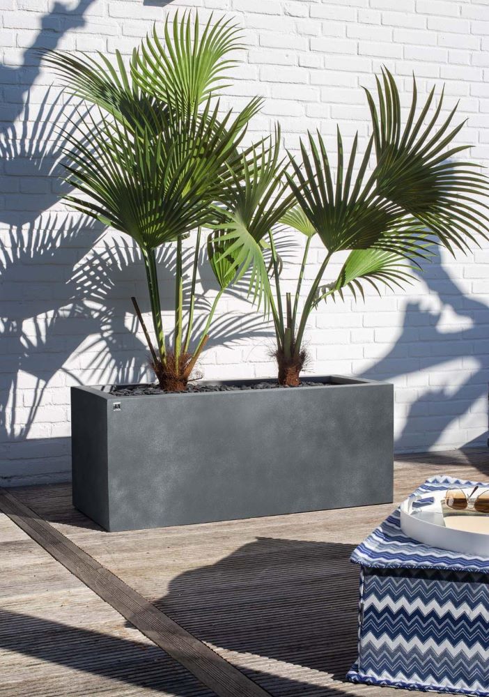 Der Division Lite Pflanzkasten mit Rollenaufnahme von Fleur Ami überzeugt durch seinen modernen Look und seine funktionalen Eigenschaften. Er besteht aus einem neu entwickelten, witterungsbeständigen Glasfaserverbundstoff, der mit einem hochwertigen Concrete-Finish versehen ist und den authentischen Beton-Look perfekt imitiert. Dies ermöglicht eine uneingeschränkte Nutzung im Outdoor-Bereich, ohne die typischen Nachteile von Beton.