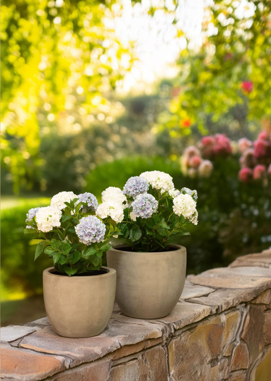 Seine schwere und standsichere Konstruktion sorgt dafür, dass das Gefäß selbst bei starkem Wind stabil bleibt und nicht umkippt – ideal für exponierte Außenbereiche. Für noch mehr Flexibilität bietet das Roccastone Gefäß die Möglichkeit, Gelenkrollen anzubringen, was eine leichte Platzierung und Bewegung ermöglicht – perfekt für alle, die ihre Außenbereiche gern umgestalten.
