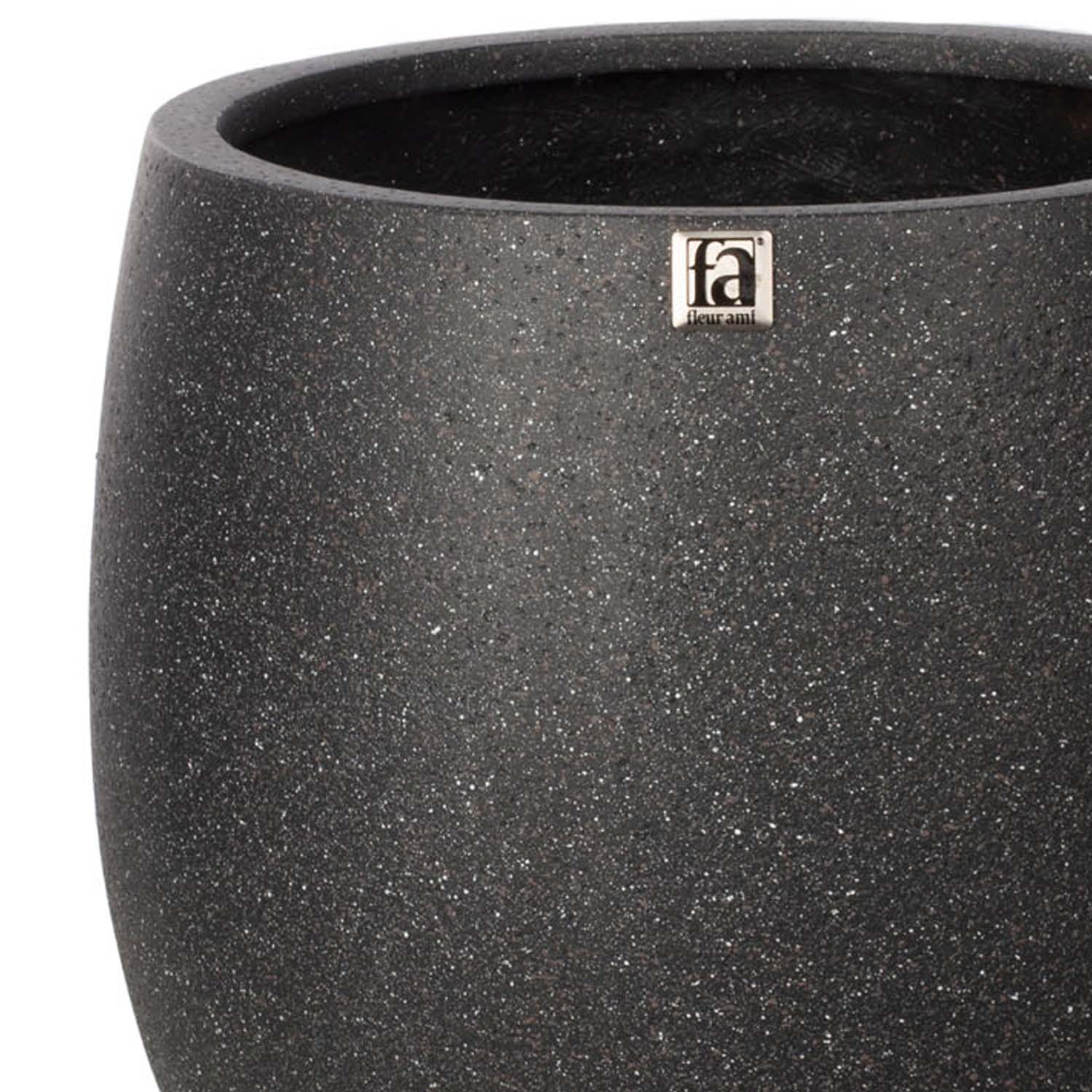 Der runde Pflanzenübertopf CLIFF von fleur ami überzeugt durch seine robuste Bauweise und eine interessante Graphit-Oberfläche. Dieses mittelgroße Pflanzgefäß ist in drei verschiedenen Größen erhältlich und passt sich dank seines schlichten, modernen Designs jedem Gartenstil an.