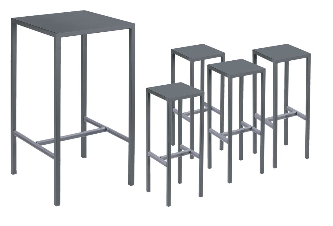 Das Set Bartisch mit 4 Barhockern Seaside von Vermobil hebt sich aufgrund von seiner Form, Verarbeitung und dem Design von üblichen Stehtischen ab. Besonders ist auch die große Farbauswahl, in denen der Tisch erhältlich ist. Egal ob schlicht oder knalligen, Vermobil bietet für jeden Geschmack das Richtige. Sparen Sie, in dem Sie das Set und nicht die einzelnen Artikel von uns beziehen. Schaffen Sie mit dem Bartisch Set einen gemütlichen Ort in Ihrem Outdoorbereich. Selbstverständlich können Sie die den Stehtisch auch im Innenbereich nutzen. Seine galvanisierte Oberfläche bietet zudem einen optimalen Rostschutz gegen Witterungseinflüsse, weshalb der Bartisch optimal für den Außenbereich geeignet ist.