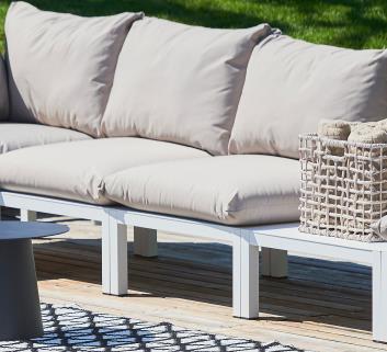 Mithilfe des Outdoor Fiam Domino Grund Element können Sie individuell Ihr Loungesofa zusammenstellen. Das Grundelement beinhaltet zwei Polster (Sitzkissen und Rückenlehne), ohne Armlehnen. Sie können nach Belieben die Anzahl der Grund Elemente bestimmen und somit auch die Größe Ihres Outdoor-Sofas. Mithilfe weiterer Elemente, die Sie ebenfalls bei uns im Shop finden, können Sie beispielsweise ein Ecksofa mit Armlehnen zusammenstellen. Wir unterstützen Sie gerne bei der Konfiguration Ihrer Gartenmöbel.