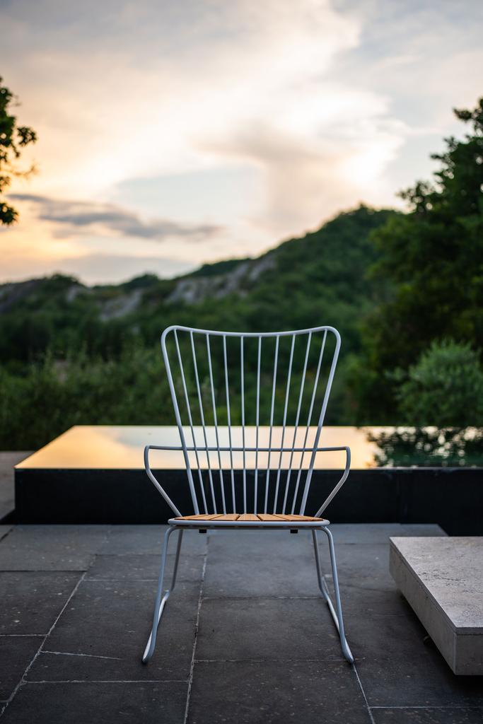 Der Outdoor Lounge Stuhl PAON von Houe vereint die schlichte Eleganz des skandinavischen Designs mit einem Hauch französischer viktorianischer Romantik. Verfügbar in vier verschiedenen Farben, passt dieser stilvolle Lounge-Stuhl perfekt in jede Garten- oder Terrasseneinrichtung. Die Sitzfläche aus hochwertigem Bambus und das pulverbeschichtete Metallgestell bieten eine einzigartige Kombination aus natürlicher Schönheit und moderner Robustheit. Verleihen Sie Ihrem Außenbereich mit dem PAON Lounge-Stuhl einen Hauch von Eleganz und Raffinesse. Genießen Sie den außergewöhnlichen Komfort des PAON Outdoor Lounge Stuhls. Die ergonomisch gestaltete Sitzfläche aus Bambus bietet ein gemütliches und entspanntes Sitzerlebnis, das durch die optional erhältlichen Sitzauflagen noch verbessert wird. Lassen Sie sich von der Kombination aus Design und Funktionalität begeistern und erleben Sie entspannte Stunden im Freien. Der PAON Lounge-Stuhl ist die perfekte Wahl für alle, die Wert auf Komfort und Stil legen. Die PAON-Linie von Houe umfasst neben dem Lounge-Stuhl auch einen Esszimmerstuhl, einen Schaukelstuhl, eine Gartenbank und einen Barhocker. Diese vielseitigen Sitzmöglichkeiten lassen sich hervorragend kombinieren und schaffen ein stimmiges Gesamtbild in Ihrem Außenbereich. Der Outdoor Lounge Stuhl ist zudem stapelbar, was eine einfache und platzsparende Aufbewahrung ermöglicht. Um die Lebensdauer des Stuhls zu maximieren, sollte er bei Regen oder Kälte untergestellt werden. Wählen Sie Ihre Lieblingsfarbe oder kombinieren Sie verschiedene Farben für einen individuellen Look. Um die Lebensdauer Ihrer HOUE Gartenmöbel zu maximieren, empfehlen wir das passende Pflegeöl.