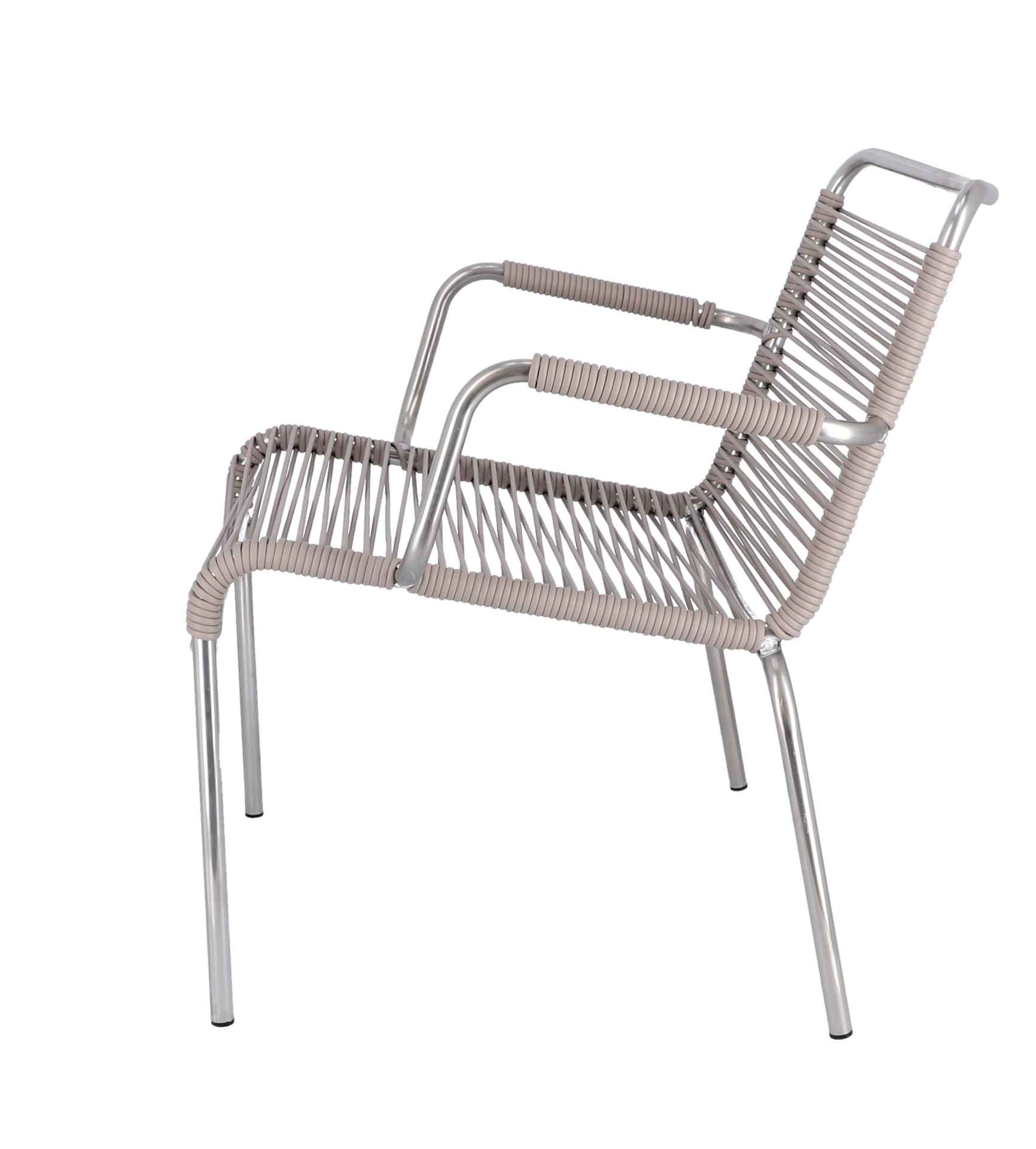 Das Material ist für den ganzjährigen Außeneinsatz geeignet. Kein Rosten, kein Verblassen – auch bei intensiver Nutzung bleibt der Sessel form- und farbstabil.