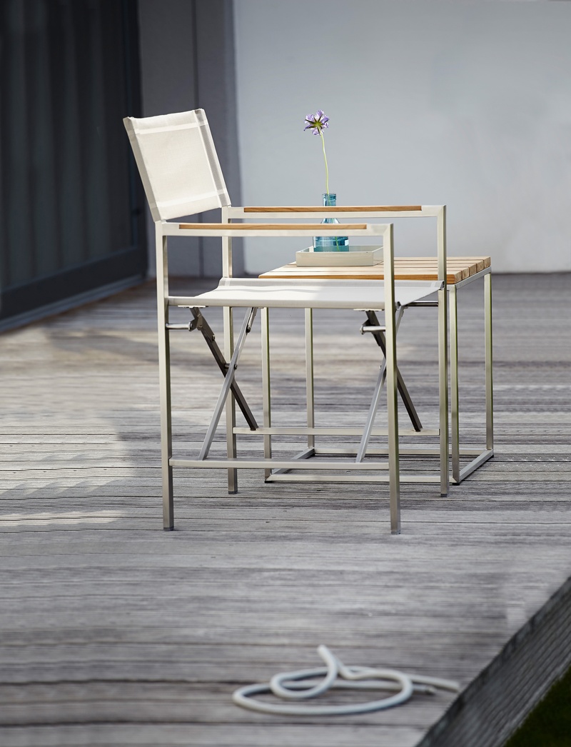 Dieser Regiesessel aus der Lux Regie Serie verbindet Exklusivität mit angenehmen Sitzgefühl. Das hochwertige Gestell aus geschliffenem Edelstahl sorgt für Halt und trägt gleichzeitig zu dem eleganten Design bei. Auch der Bezug ist sehr hochwertig - wetterfestes und UV-Beständiges Batyline, welches den Stuhl Outdoor sowie Indoor tauglich macht. Was auch sofort ins Auge sticht, sind die Armlehnen aus Teakholz, welche einen sehr schönen Kontrast hergeben und nicht nur für noch mehr Entspannung sorgen. Wer also auf der Suche nach einem echten Designerstück für die Terrasse sucht, für den ist dieser Regiesessel genau das richtige.