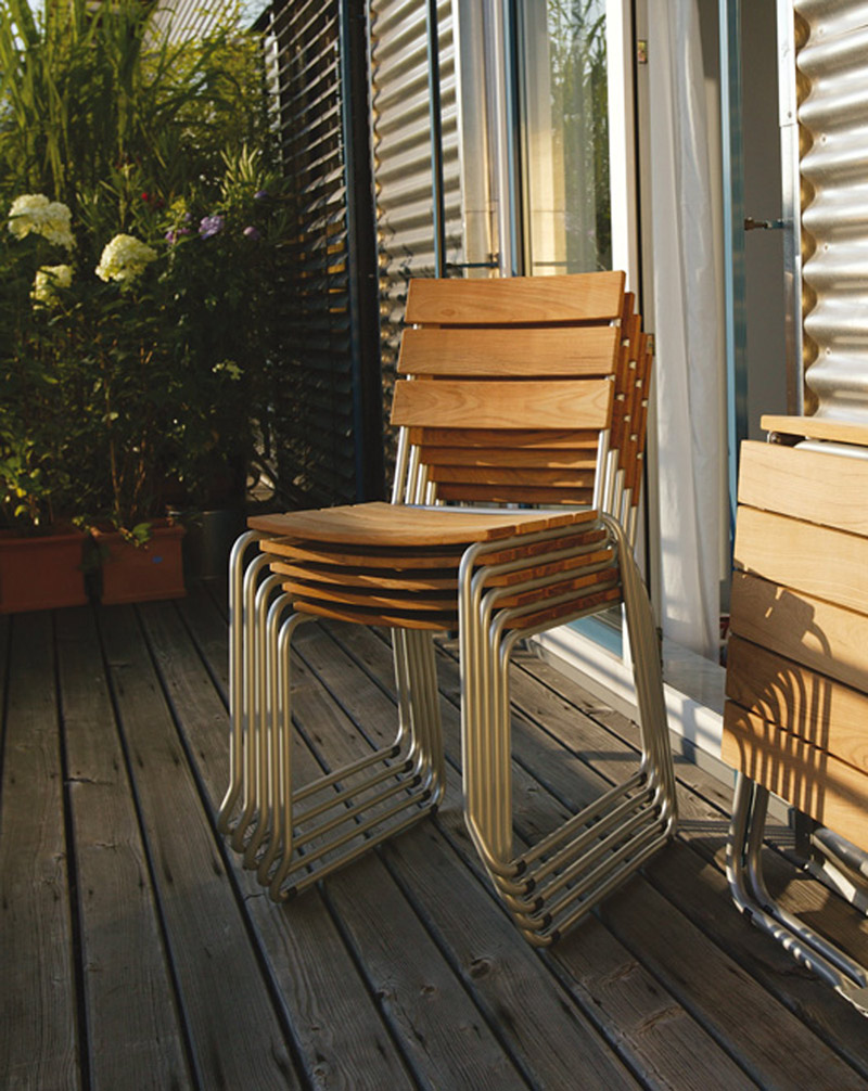 Produktinformationen "Outdoor Stuhl Balcony mit Teak Belattung Gestell Edelstahl geschliffen Belattung Teak"