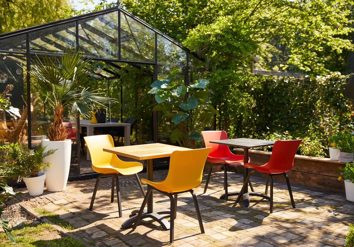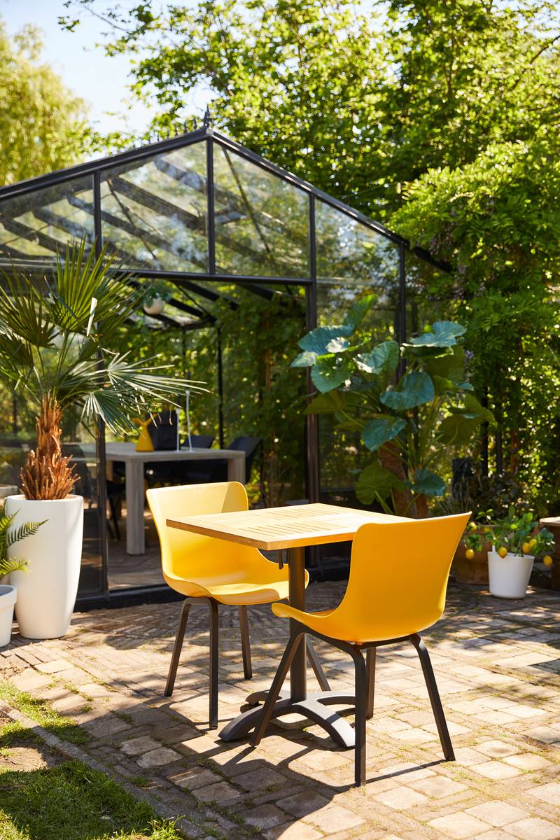 Der Sophie Teak Bistrotisch 70 × 70 cm von Hartman passt überall hin und nimmt nicht viel Platz weg.