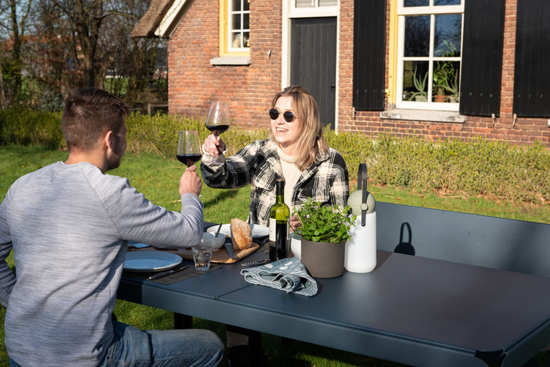 Der Outdoor Esstisch Bended Table von Welteree ist der perfekte Outdoor Tisch für den Sommer. Egal auf welcher Oberfläche der Tisch steht, er wackelt nie. Durch das leichte recycelbare Aluminium kann der Tisch ganz einfach von einem Ort zum anderen getragen werden. Die Leichtigkeit des Materials sorgt zudem für das schlichte und zugleich moderne Design. Bended Table gibt es in drei verschiedenen Größen und zwei Farben so das auch Sie den passenden Tisch finden. Mit mehreren aneinandergereihten Tischen können Sie sich beispielsweise auch eine große Tafel erstellen, an dem Sie zahlreiche Gäste empfangen können, sofern Sie ausreichend Platz in Ihrem Garten haben. Wählen Sie aus den Farben grau/blau oder grün und zwischen den Längen 90 cm, 180 cm oder 270 cm. Die passende Gartenbank für den Esstisch finden Sie ebenfalls bei uns im Shop. Der Tisch mit der Länge 90cm wiegt 14 kg, die mittlere Größe180 cm wiegen 23 kg und der größte Tisch mit 270 cm wiegt 32 kg.