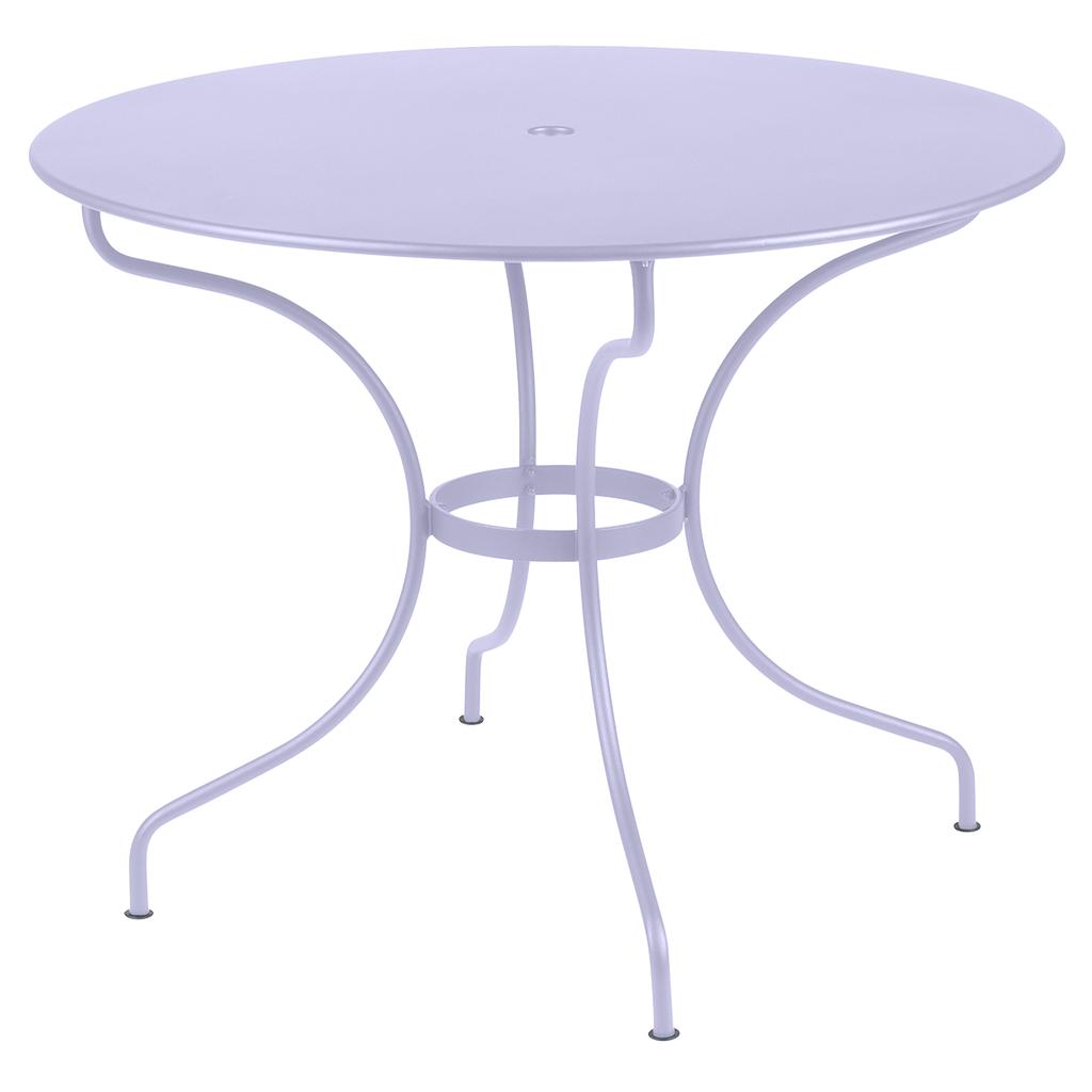 Der Opéra+ Outdoor-Tisch von Fermob überzeugt mit einem großzügigen Durchmesser von Ø117 cm. Hergestellt aus robustem Stahl und veredelt mit einer speziellen Pulverbeschichtung, trotzt dieser Tisch allen Witterungsbedingungen und behält dennoch seine elegante Ausstrahlung. Ob im Garten, auf der Terrasse oder sogar im Wohnzimmer – dieser Tisch fügt sich harmonisch in jede Umgebung ein und verleiht Ihrem Raum einen Hauch von Raffinesse. Die robuste Konstruktion sorgt für Langlebigkeit und Beständigkeit, während das stilvolle Design jedes Ambiente bereichert. Trotz seiner soliden Bauweise besticht der Opéra+ Outdoor-Tisch durch sein überraschend leichtes Gewicht. Die filigranen Linien und femininen Kurven machen den Tisch zu einem ästhetischen Highlight, das sich mühelos verschieben lässt. Dieser Tisch bietet bequem Platz für bis zu 5 Personen und ist damit ideal für gesellige Runden im Freien. Ein praktisches Detail ist das integrierte Loch in der Tischplatte, das Platz für einen Sonnenschirm bietet, sodass Sie auch an heißen Tagen angenehmen Schatten genießen können. Verleihen Sie Ihrem Outdoor-Bereich eine persönliche Note mit dem Opéra+ Outdoor-Tisch, der in 25 lebendigen Farben erhältlich ist. Gestalten Sie Ihren Garten oder Ihre Terrasse ganz nach Ihrem Geschmack und setzen Sie farbenfrohe Akzente. Die hochwertige Pulverbeschichtung sorgt nicht nur für eine langanhaltende Farbbrillanz, sondern schützt den Tisch auch vor den Elementen. Kombinieren Sie den Tisch mit den passenden Stühlen der Opéra+ Kollektion, die ebenfalls in unserem Shop erhältlich sind, um ein harmonisches Ensemble zu schaffen.