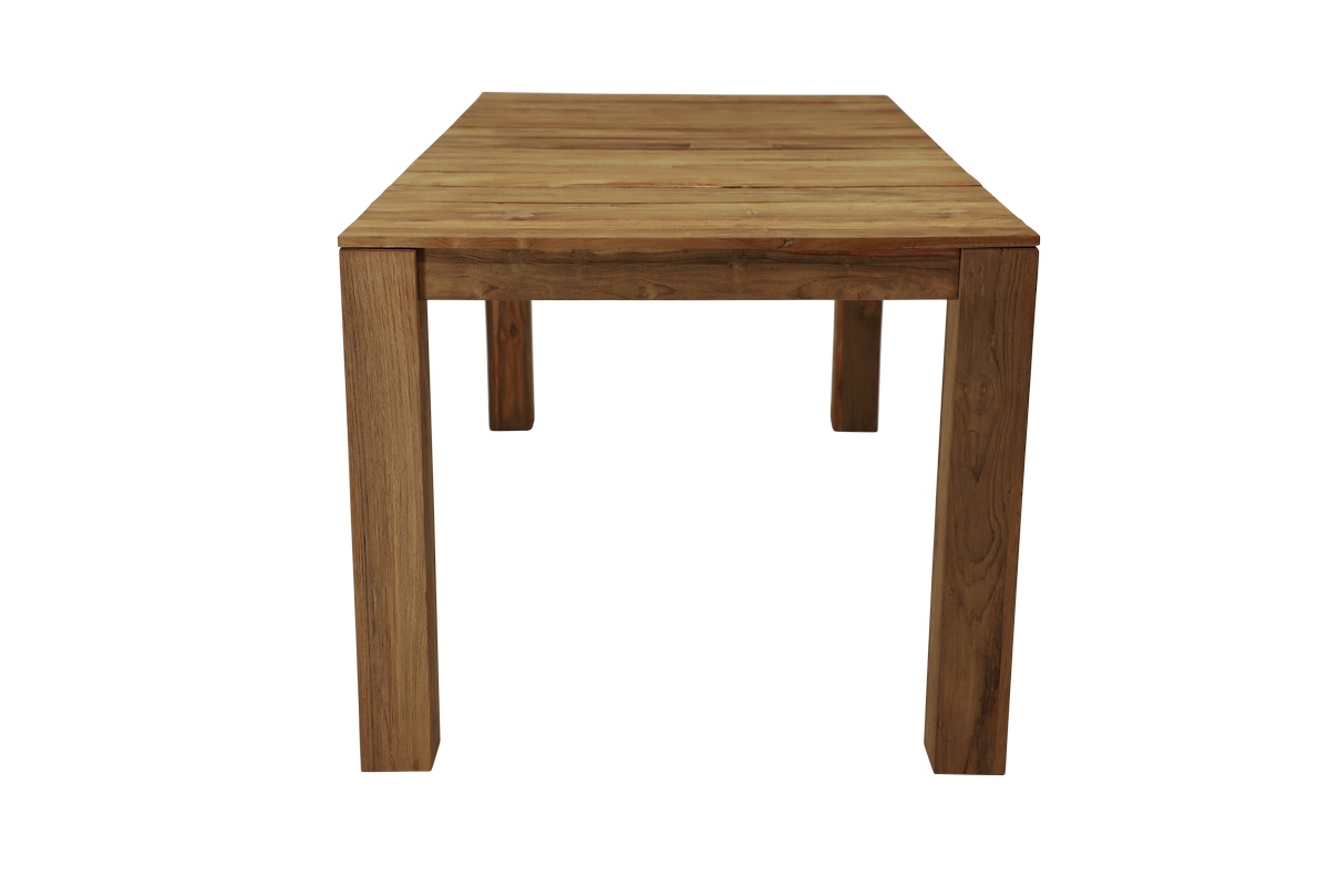 Mit dem Stage Outdoor-Tisch von jankurtz werden Sie ein paar erholsame Stunden in Ihrem Gerten, auf Ihrer Terrasse oder dem Balkon verbringen. Der Tisch aus hochwertig recyceltem Teakholz lädt zu einem gemeinsamen Beisammensein ein, und bietet zudem ausreichend Platz zum Essen. Je nach Platzbedarf ist der Holztisch in vier verschiedenen Größen verfügbar. Die schlichte natur Farbe des Tisches strahlt ein modernes Design aus und ist ausgezeichnet mit zahlreichen Sitzgarnituren zu kombinieren. Der Tisch ist witterungsbeständig und kann dadurch unbedenklich im Freien stehen.