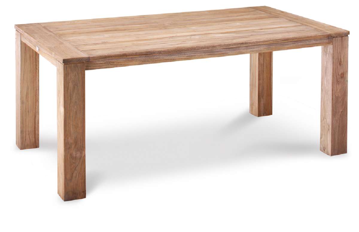 Der hochwertige Teakholz - Tisch Moretti besteht aus einer wuchtigen Beinkonstruktion (12 x 12 cm), einer edlen Lattenkonstruktion und detailbetonten Formgebung. Die Oberfläche erhält durch ein besonderes Verfahren ihre attraktive ,,Old-Teak" - Patina. Der Vorteil: der Tisch bleicht in den ersten Jahren nach dem Kauf nicht so stark aus, wie bei Teakholz sonst üblich, und besitzt schon von Anfang an den besonderen Charme, der Teakholzmöbel zu etwas ganz besonderem macht. Der Tisch ist ideal kombinierbar mit nahezu allen Geflecht- und Metallmöbel. Der Tisch eignet sich hervorragend für den Wohnbereich ebenso wie für den dauerhaften Einsatz im Freien. Maße: rechteckig 180 x 100 cm / Tischhöhe: 75 cm