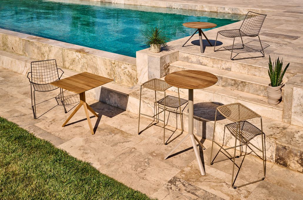 | Material Tischplatte: | HPL oder Teak |