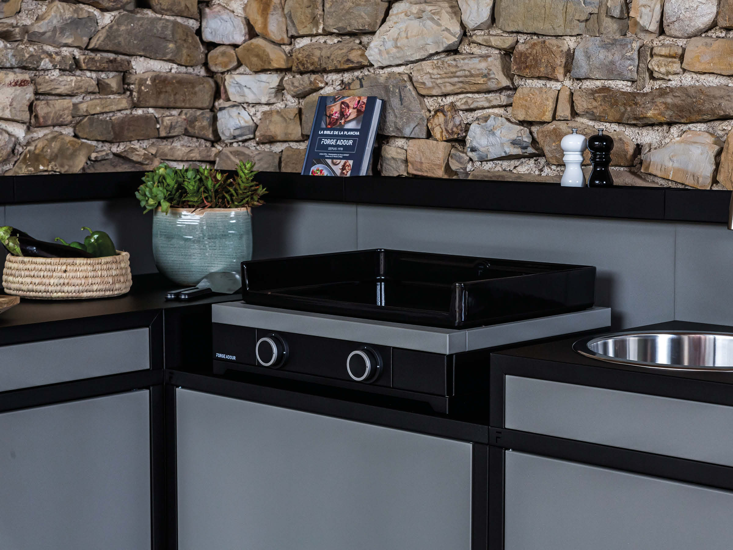 Grillmodul Stahl schwarz / grau, ohne Grill
