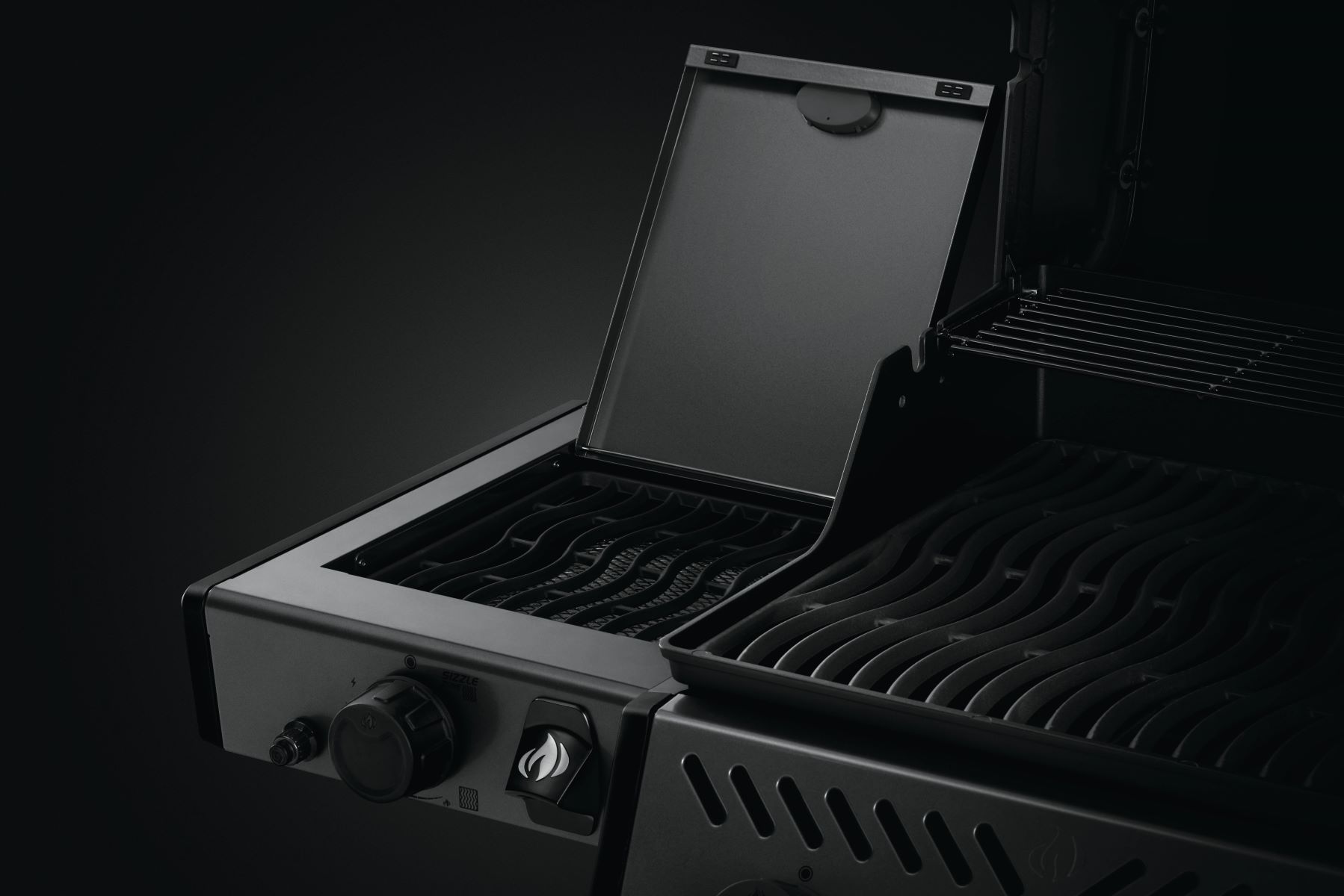 Mit den vielseitigen SIZZLE ZONE™ Infrarot-Seitenbrennern können Sie Steaks mit einer perfekt karamellisierten Kruste zubereiten oder delikate Wok-Gerichte auf höchstem Niveau genießen. Dank der robusten Rollen lässt sich der Grill mühelos bewegen, während der abklappbare Seitentisch zusätzliche Arbeitsfläche bietet und einen integrierten Flaschenöffner für sofortige Zugänglichkeit bereithält.