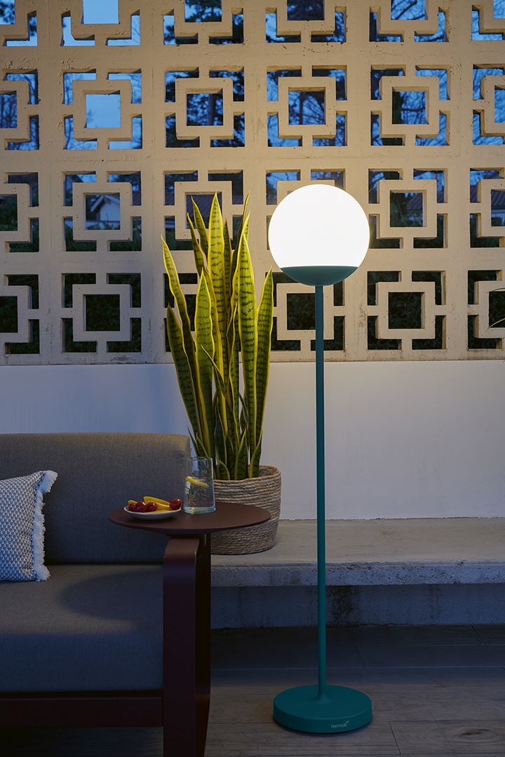 Entdecken Sie die MOOON! Stehleuchte von Fermob, eine beeindruckende Lichtquelle für den Außenbereich, die durch ihr elegantes Design und ihre imposante Höhe von 134 cm besticht. Diese Outdoor-Leuchte ist nicht nur ein funktionales Beleuchtungsobjekt, sondern auch ein stilvolles Accessoire, das Ihren Garten, Ihre Terrasse oder Ihren Balkon in Szene setzt. Dank der robusten Konstruktion und hochwertigen Materialien trotzt die MOOON Stehleuchte jedem Wetter und bleibt ein langlebiger Begleiter in Ihrem Außenbereich. Mit der MOOON Stehleuchte genießen Sie maximale Flexibilität. Die batteriebetriebene Leuchte bietet eine Akkulaufzeit von mindestens 8 Stunden bei maximaler Leuchtkraft, sodass Sie Ihre Abende im Freien in vollen Zügen genießen können. Die Leuchte verfügt über vier verschiedene Beleuchtungsmodi, die es Ihnen ermöglichen, zwischen kaltem und warmem Licht zu wählen – ganz nach Ihrer Stimmung und dem Anlass. Der mitgelieferte Ladesockel lädt die Leuchte in nur 4 Stunden vollständig auf, sodass sie schnell wieder einsatzbereit ist. Die Stehleuchte ist mit einer integrierten Bluetooth-Funktion ausgestattet, die in Kombination mit dem vernetzten Schalter LUDO von Fermob, oder der Frmob Lighting App, eine komfortable Steuerung ermöglicht. Sie können Ihre Leuchte ganz einfach von der Couch oder Ihrem Lieblingssessel aus bedienen und die Beleuchtung an Ihre Bedürfnisse anpassen. Die Lampe ist in fünf verschiedenen, atemberaubenden Farben erhältlich, die Ihrem Außenbereich eine persönliche Note verleihen und für eine harmonische Atmosphäre sorgen.