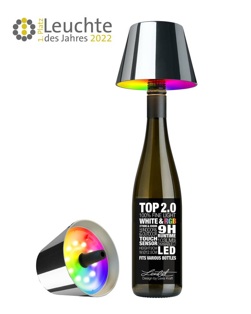 Willkommen im neuen Zeitalter der modernen, stilvollen Beleuchtung: Die Akku-Lampe "Top 2.0" von Sompex. Die hochmoderne, dimmbare Lampe integriert 12 Lichtfarben, um ein einzigartiges und besonderes Lichtobjekt für Ihr Zuhause oder Ihre Veranstaltung zu schaffen. Die konische Form der Lampe passt perfekt in verschiedene Arten von Flaschenhälsen und bietet Ihnen unendliche Möglichkeiten der individuellen Gestaltung. Mit einer Leuchtdauer von 40 Stunden wird diese langlebige Lampe weder die Party noch Ihren kuscheligen Nachtschlaf stören! Die Kunststoff-Konstruktion mit Touchsensor gibt Ihnen die maximale Kontrolle über die Lichtstärke und -farbe. Die Sompex Akkuleuchte Top 2.0 ist ein Muss für alle, die Wert auf hochwertiges Design und Bequemlichkeit innerhalb und außerhalb ihres Zuhauses legen, und zwar für alle Gelegenheiten!