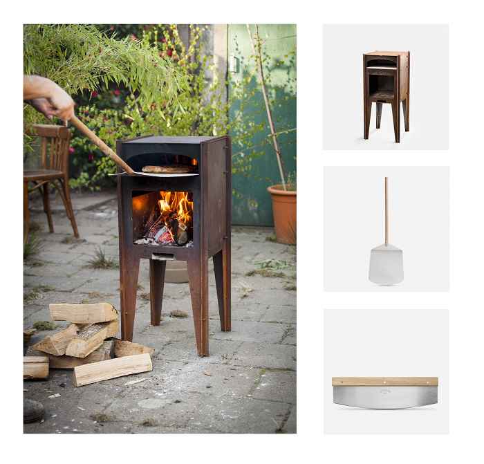 Verschiedene Angebotssets für den Outdoor Pizza Ofen - Cortenstahl erhältlich: "Alles für die perfekte Pizza", "Der Allrounder" oder "Sicher verstaut".
