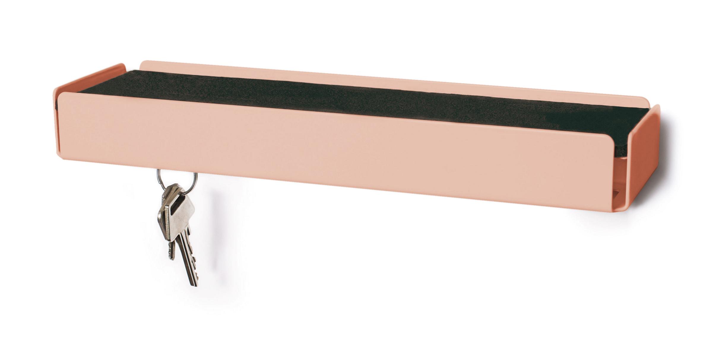 Die Schlüsselbox mit Ablage bietet mit Ihren 25 leicht nach oben gebogenen Haken ausreichend Platz um Ihren Schlüsselbund oder andere leichte Dinge daran aufzuhängen. Die Ablage können Sie als praktische Ablagefläche oder zur Präsentation für kleine Dekoelemente nutzen. Durch die nicht sichtbaren Haken, welche sich an der Unterseite befinden, wirkt die Schlüsselbox äußerst minimalistisch und stilvoll.