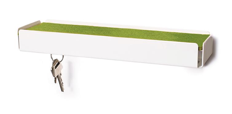 Die Schlüsselbox mit Ablage bietet mit Ihren 25 leicht nach oben gebogenen Haken ausreichend Platz um Ihren Schlüsselbund oder andere leichte Dinge daran aufzuhängen. Die Ablage können Sie als praktische Ablagefläche oder zur Präsentation für kleine Dekoelemente nutzen. Durch die nicht sichtbaren Haken, welche sich an der Unterseite befinden, wirkt die Schlüsselbox äußerst minimalistisch und stilvoll.