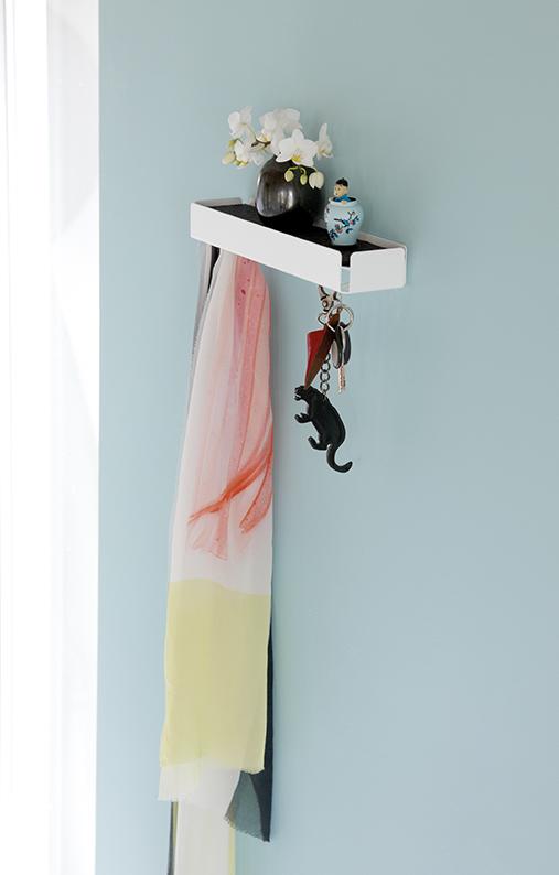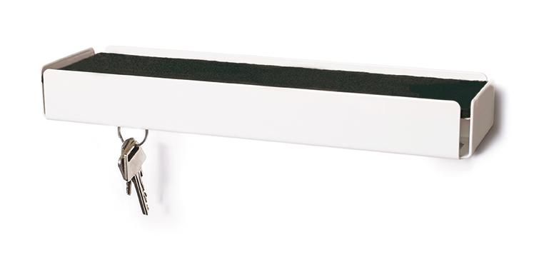 Die Schlüsselbox mit Ablage bietet mit Ihren 25 leicht nach oben gebogenen Haken ausreichend Platz um Ihren Schlüsselbund oder andere leichte Dinge daran aufzuhängen. Die Ablage können Sie als praktische Ablagefläche oder zur Präsentation für kleine Dekoelemente nutzen. Durch die nicht sichtbaren Haken, welche sich an der Unterseite befinden, wirkt die Schlüsselbox äußerst minimalistisch und stilvoll.