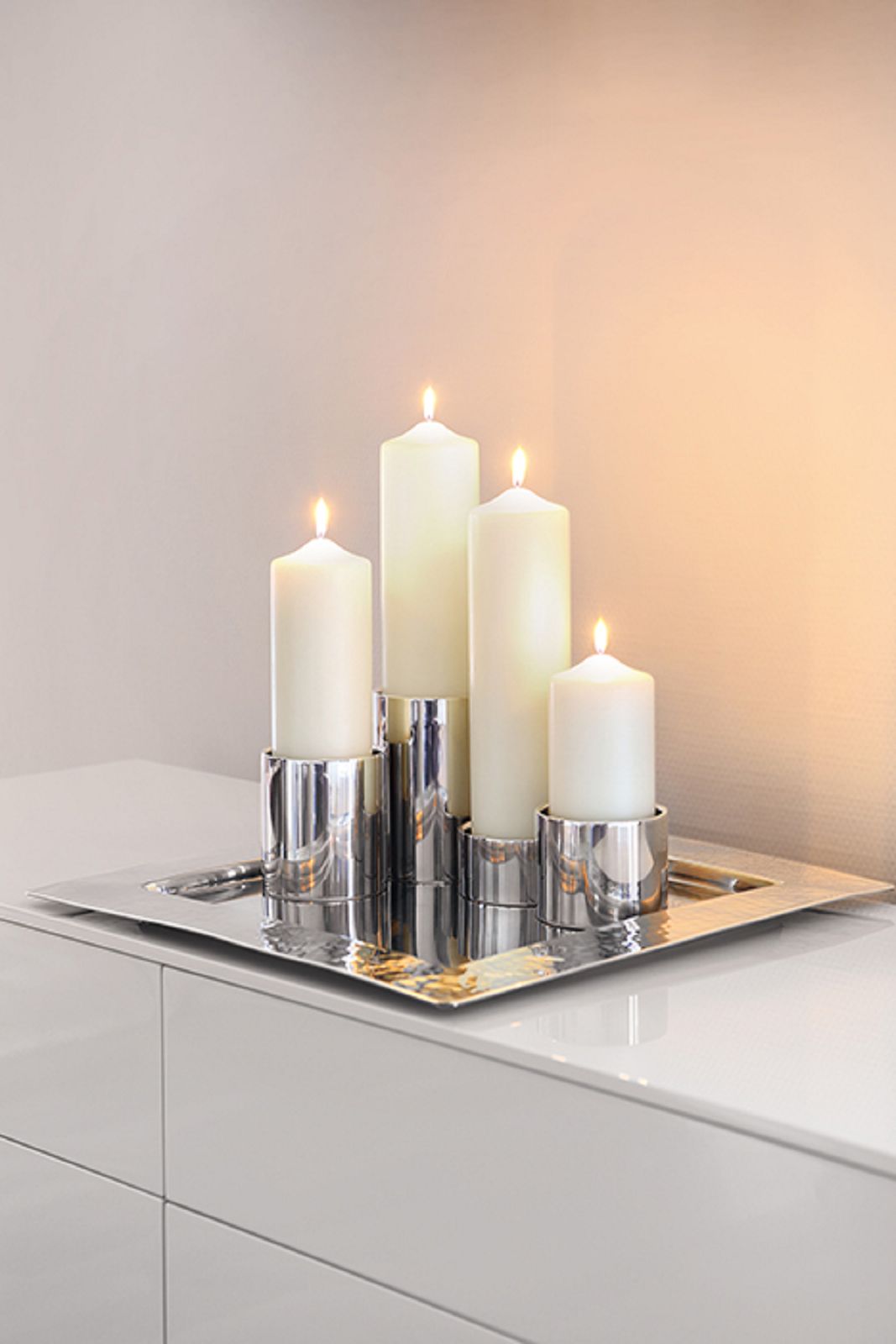 Wenn Sie auf der Suche nach einem stilvollen Akzent für Ihre Wohnräume sind, ist der SOBRIO Stumpenkerzenhalter silber von Fink die ideale Lösung. Aus hochwertigem Edelstahl gefertigt, besticht dieser Kerzenhalter durch sein modernes und minimalistisches Design. Mit vier verschiedenen Höhen – 5 cm, 8 cm, 11 cm und 15 cm – eröffnet er Ihnen zahlreiche Gestaltungsmöglichkeiten, um Ihrer Kreativität freien Lauf zu lassen.